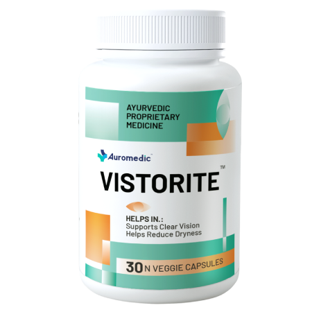Vistorite is a comprehensive Ayurvedic eye-care supplement designed to support vision clarity, reduce eye strain, and promote long-term eye health. Powered by the goodness of Triphala herbs, Amla, Bhringraj, Guduchi, Turmeric, and the richness of Kesar, Vistorite nourishes the eyes from within while protecting them from daily stress caused by screens, pollution, and aging.